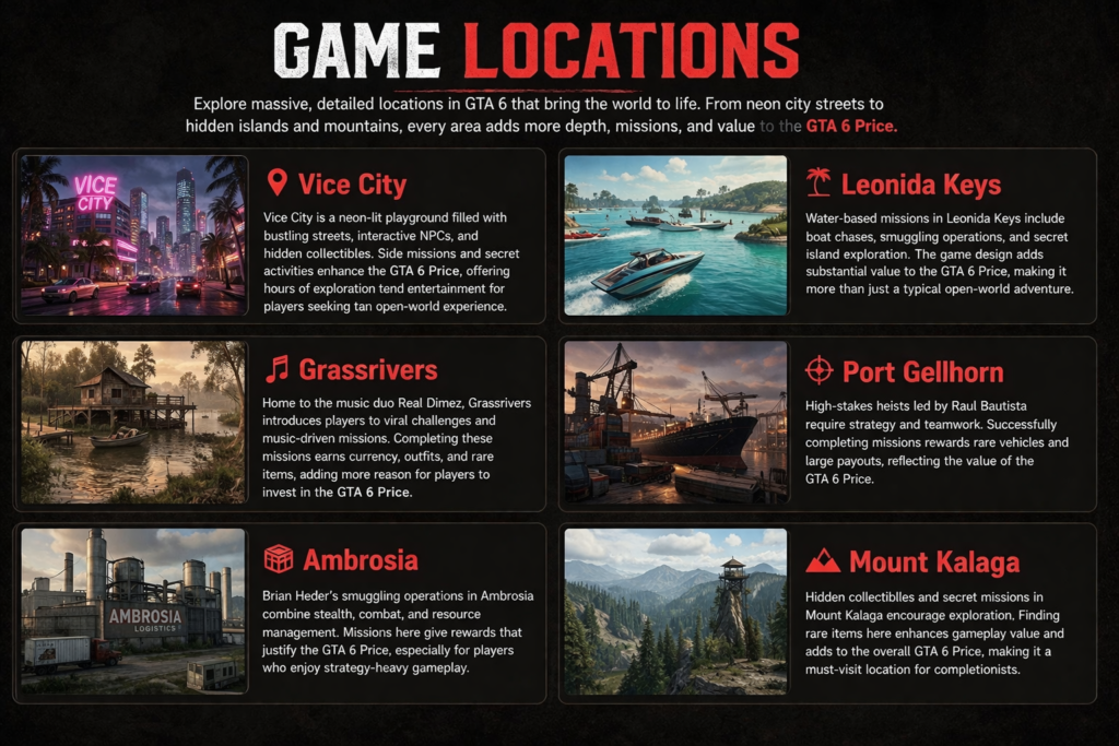 - Explore every location to unlock collectibles, missions, and secrets that justify the GTA 6 Price.